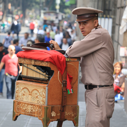 Por las calles del Centro Histórico, en los parques se distingue su sonido. Un vals, las mañanitas, una ranchera que se tocan con cilindros a veces demasiado agudos. En medio de una bulliciosa calle, los organillos logran sobresalir mientras el uniformado caqui da vuelta a la manivela.