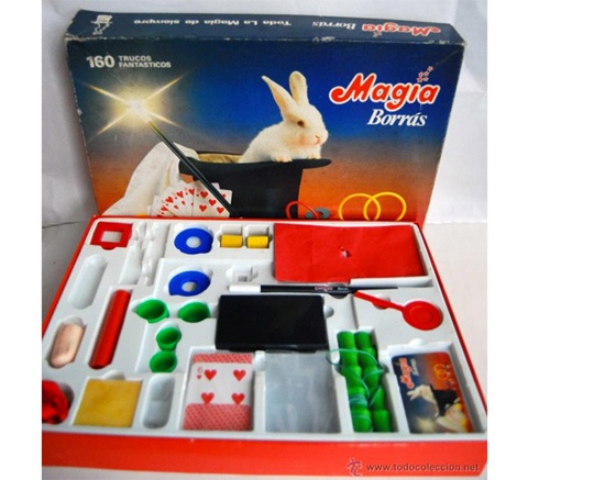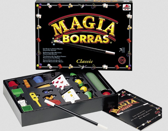 4. La primera versión de Magia Borrás es de 1933, inspirado en sets de juego que se vendían en Francia y Alemania. La caja ha ido cambiando de diseño, incluyendo además accesorios como un DVD explicativo, pero mantiene su elemento identificador desde hace décadas: la varita negra y blanca.