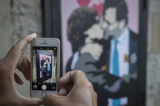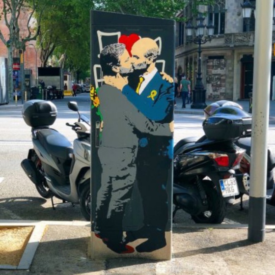 "Que el arte urbano despierte ahora tanta atención es un cambio histórico. Antes era rechazado y, en cambio, el cartel en el que Puigdemont y Rajoy se besaban fue noticia de portada en varios medios españoles", celebra el artista. La obra, titulada La tercera vía, apareció en Barcelona una mañana de julio de 2017, pero también desapareció casi de inmediato.